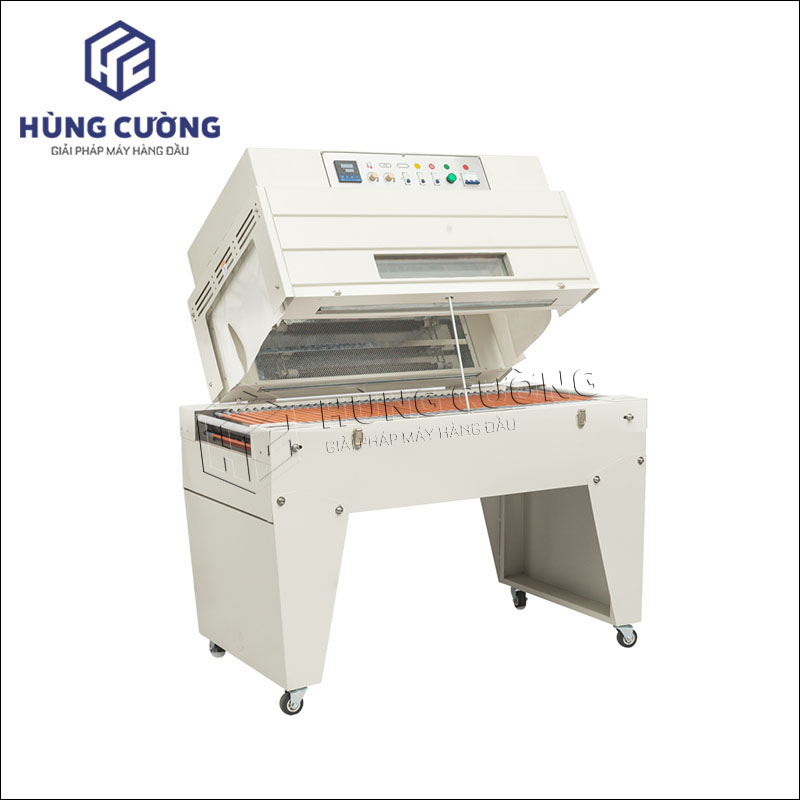 Máy thiết kế có cửa sổ nhỏ bằng vật liệu kính chịu nhiệt và đèn chiếu sáng, tạo điều kiện quan sát sản phẩm bên trong buồng co rút màng.