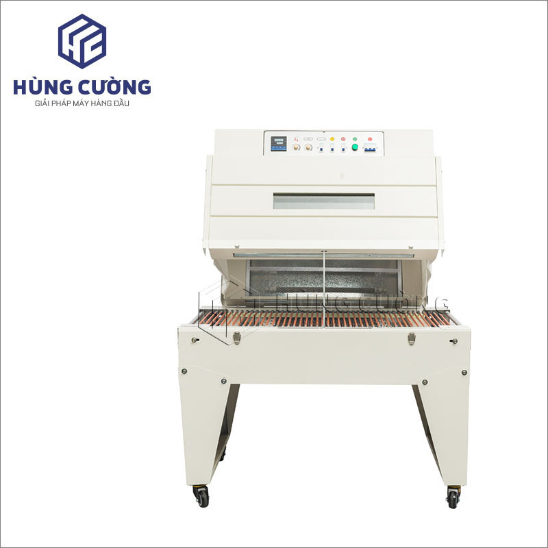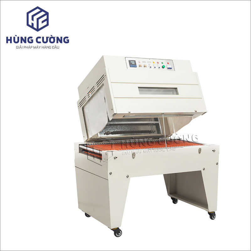 Máy thiết kế có cửa sổ nhỏ bằng vật liệu kính chịu nhiệt và đèn chiếu sáng, tạo điều kiện quan sát sản phẩm bên trong buồng co rút màng.