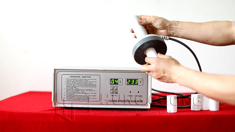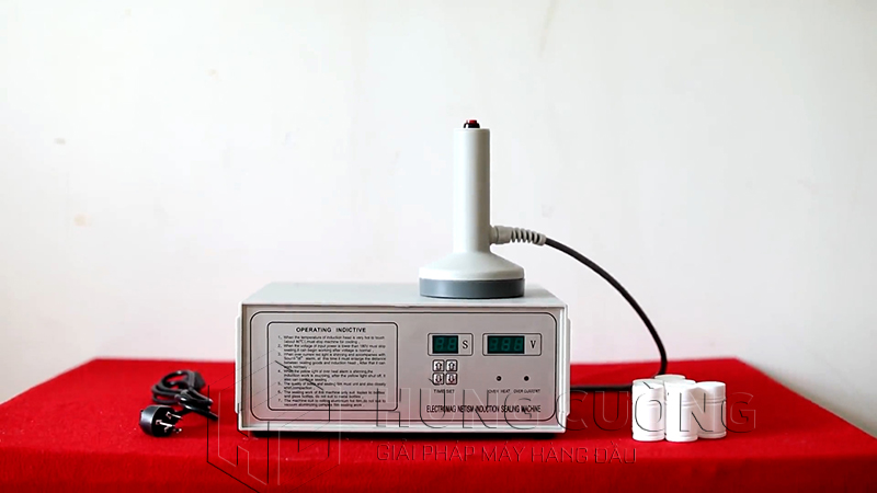 Máy hoạt động dựa trên nguyên lý làm nóng cảm ứng điện từ, thông qua tấm cảm ứng gia nhiệt trực tiếp tới màng seal sinh nhiệt tức thì làm cho lớp keo trên bề mặt màng seal nóng chảy, bám chắc trên bề mặt chai lọ, lúc này sản phẩm đã được niêm phong kín.