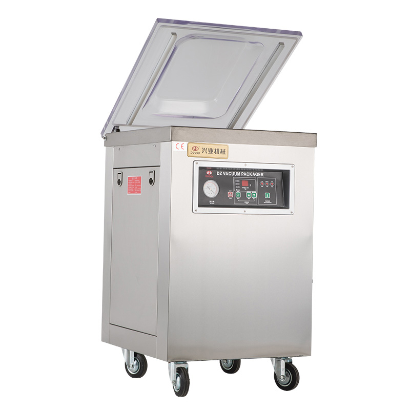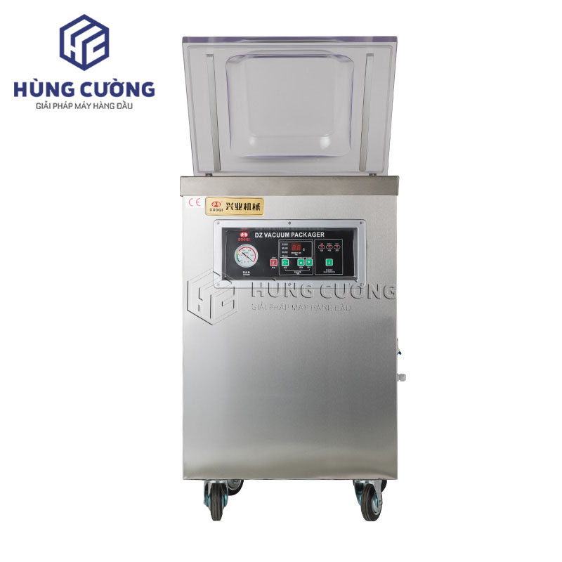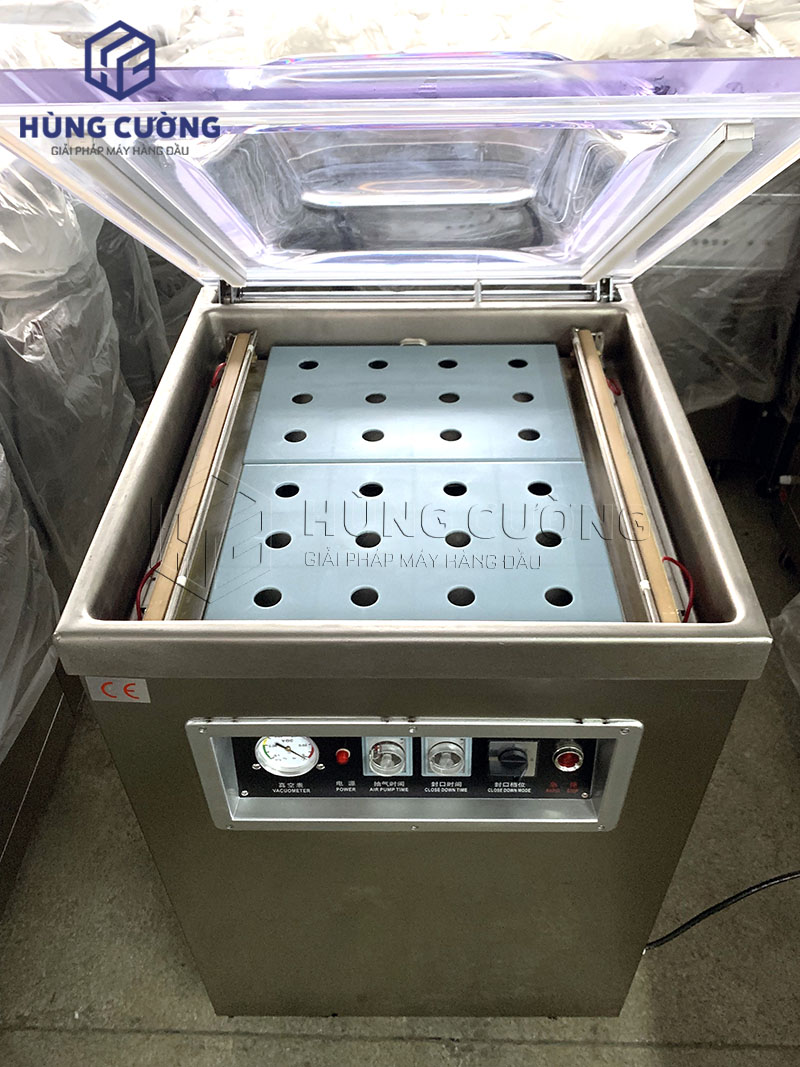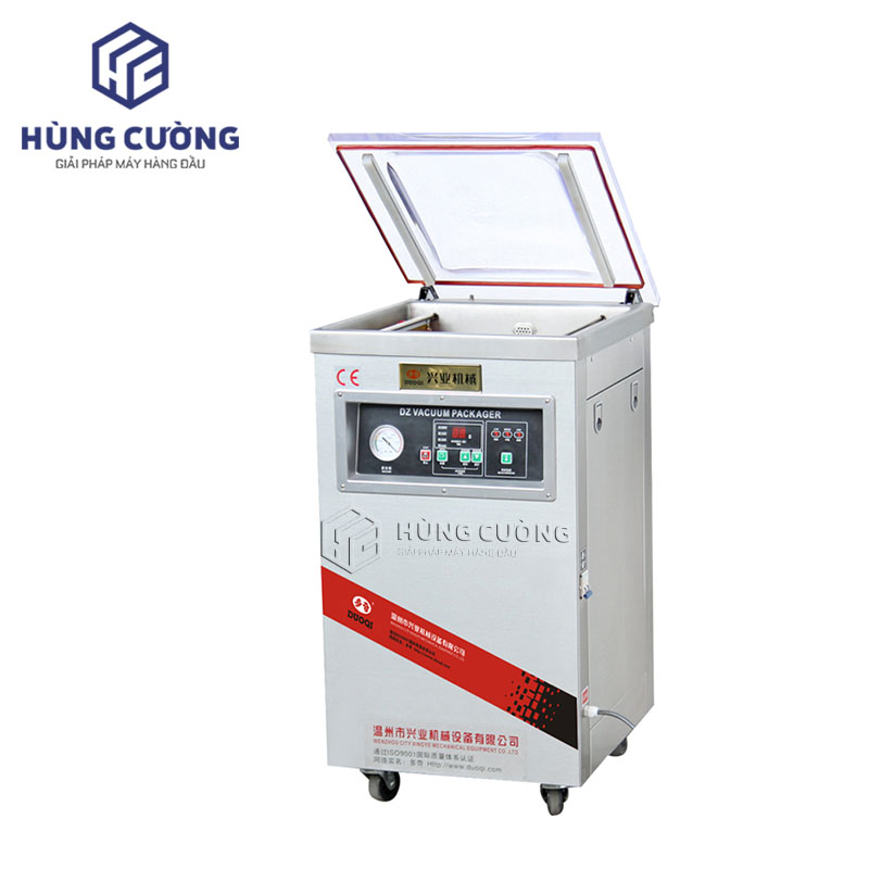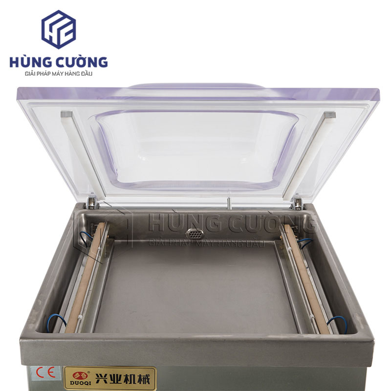 Máy đóng gói hút chân không chuẩn Duoqi DZ-500 thuộc dòng máy hút chân không công nghiệp được sử dụng phổ biến trong khâu đóng gói chân không bảo quản thực phẩm của các cơ sở, doanh nghiệp quy mô lớn. Máy có cấu tạo phần khung vỏ bằng vật liệu inox cao cấp có độ bên cao, chịu nhiệt, chịu nén và ngoại lực tốt. Phần nắp của máy sử dụng vật liệu mica trong suốt giúp người dùng có thể dễ dàng quan sát hoạt động hút chân không bên trong máy.