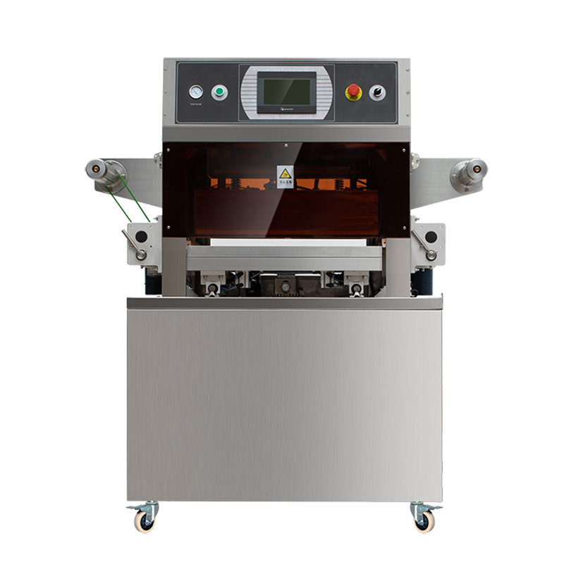 Máy đóng gói hút chân không khay thực phẩm bán tự động ZKT-450 SK. Máy được sử dụng rộng rãi tại cách doanh nghiệp chế biến thịt, thủy, hải sản tươi sống, đồ nguội... Đặc biệt dùng để đóng gói hút chân không theo phương thức ôm sát sản phẩm thịt, cá, các sản phẩm chất lượng cao được bày bán tại các quầy siêu thị, giúp bảo quản sản phẩm tốt hơn, đẹp mắt hơn.